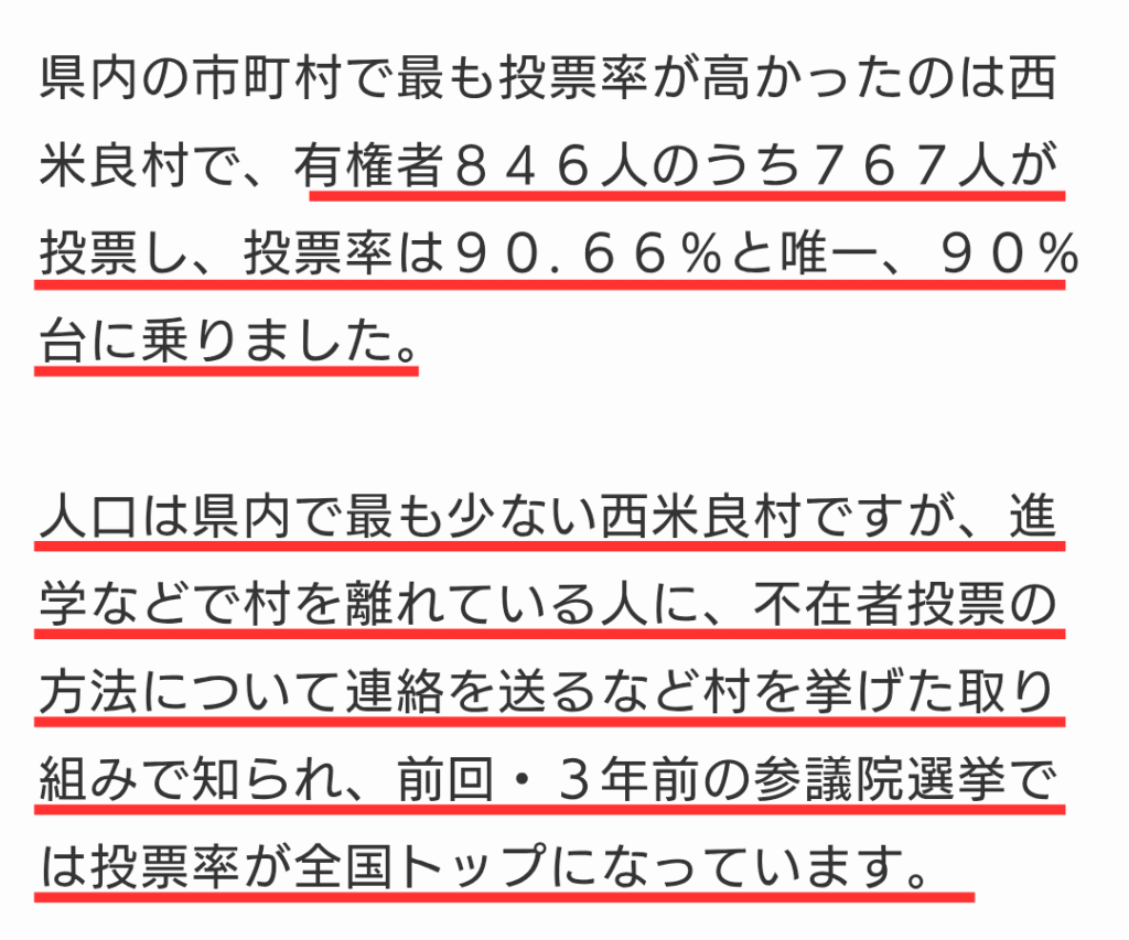 そんな中、今回の参院選でなんと投票率が90.66%という村がありました。