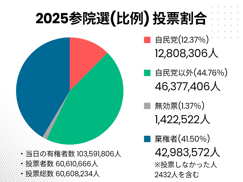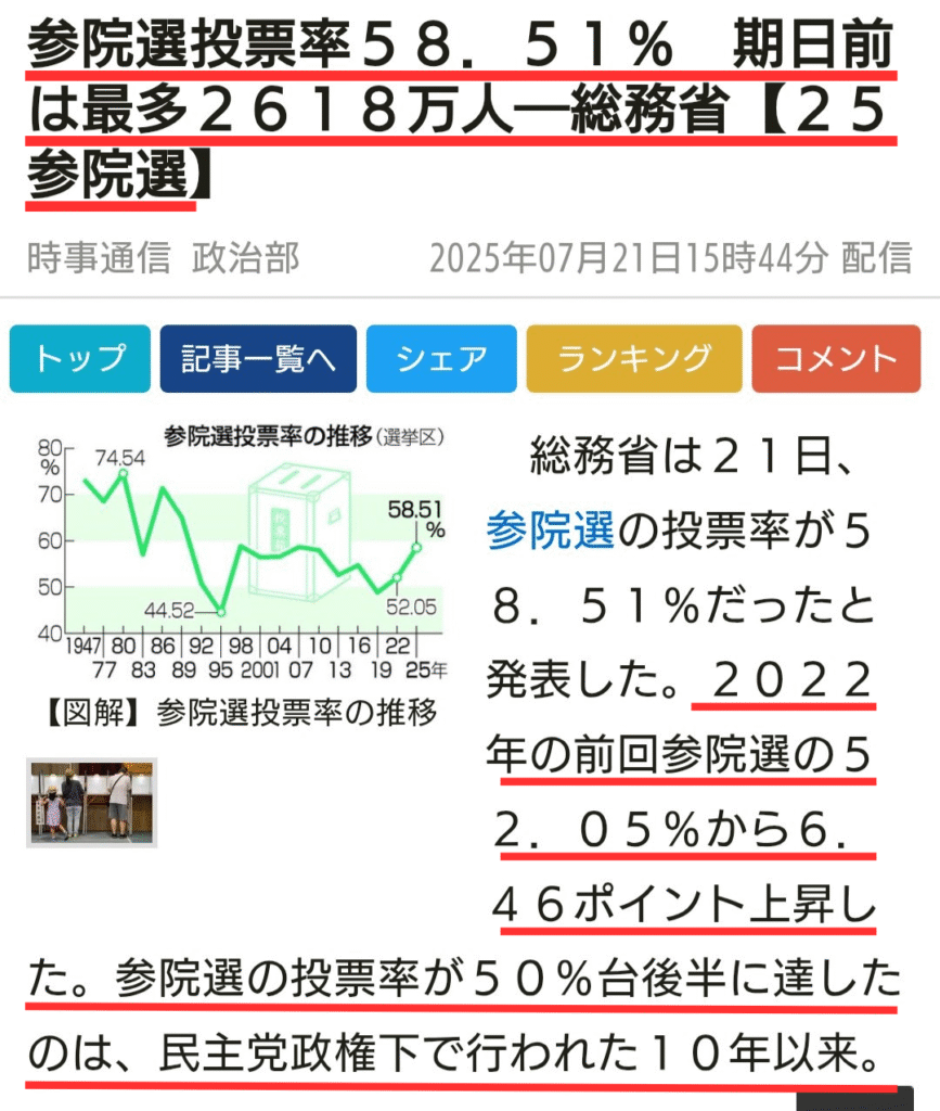 - 今回の選挙(参議院議員選挙2025)はいつもより投票率が高かった