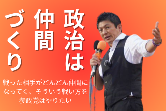 戦った相手がどんどん仲間になってくね、そういう戦い方を参政党はやりたいと、いうふうに思っています。